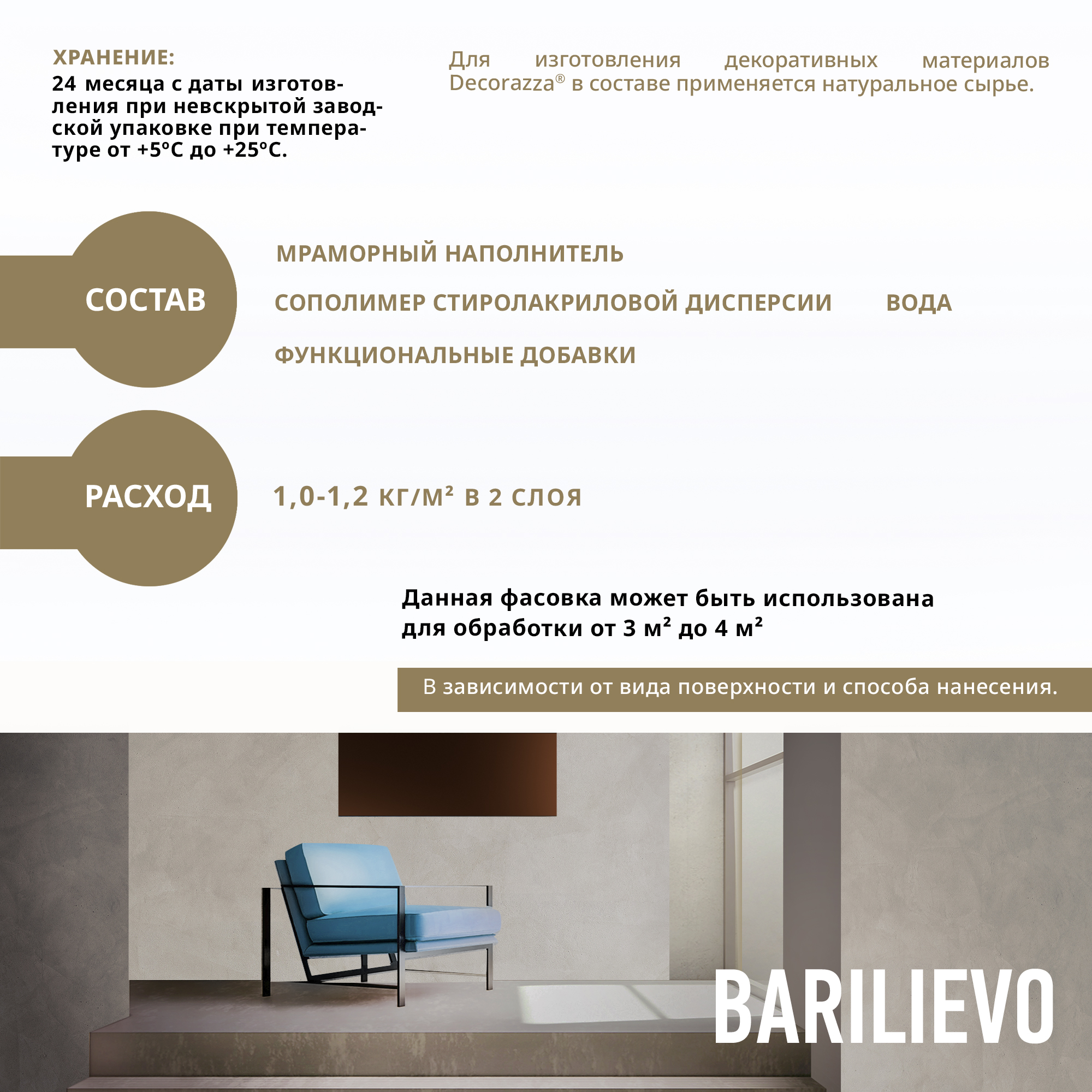 Фактурное покрытие BARILIEVO  -  Фактурная декоративная штукатурка с эффектом ткани, бетона, марокканской штукатурки, металлических листов, камня и других поверхностей от бренда Decorazza с доставкой по России!