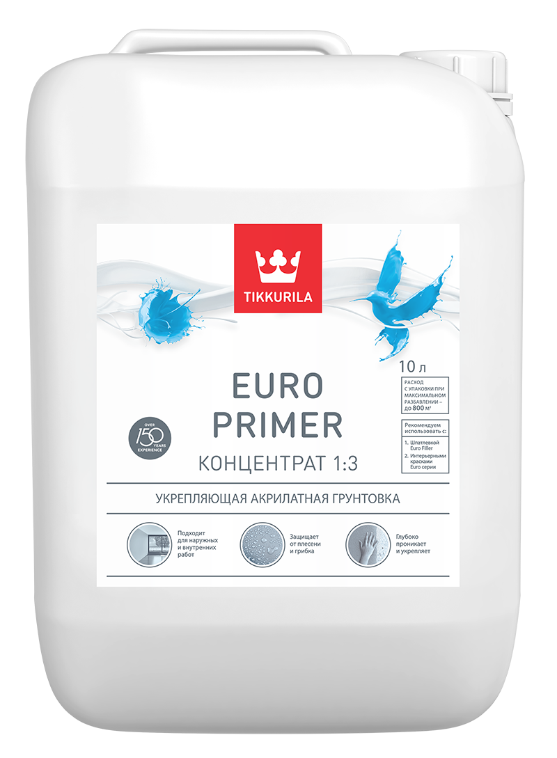 Грунт интерьерный EURO PRIMER  -  Акрилатная грунтовка для грунтования поверхностей перед интерьерной окраской в помещениях любого типа, а также для фасадных работ от бренда Tikkurila с доставкой по России!