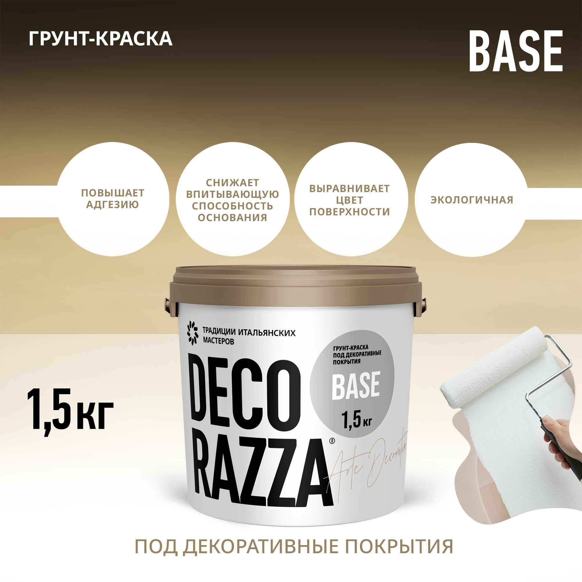 Грунт-краска BASE  -  Грунт-краска Decorazza BASE — это высококачественное акриловое покрытие, специально разработанное для создания эстетичных и долговечных декоративных покрытий и штукатурок. Отличительной особенностью продукта является его экологичность и отсутствие запаха, что делает процесс работы комфортным и безопасным как для профессионалов, так и для домашних мастеров. Decorazza BASE идеально подходит для подготовки поверхностей перед нанесением декоративной штукатурки или других декоративных элементов, обеспечивая отличную адгезию и равномерность покрытия. Благодаря своей универсальности и легкости в применении, эта грунтовка открывает новые возможности для реализации самых смелых дизайнерских идей. от бренда Decorazza с доставкой по России!