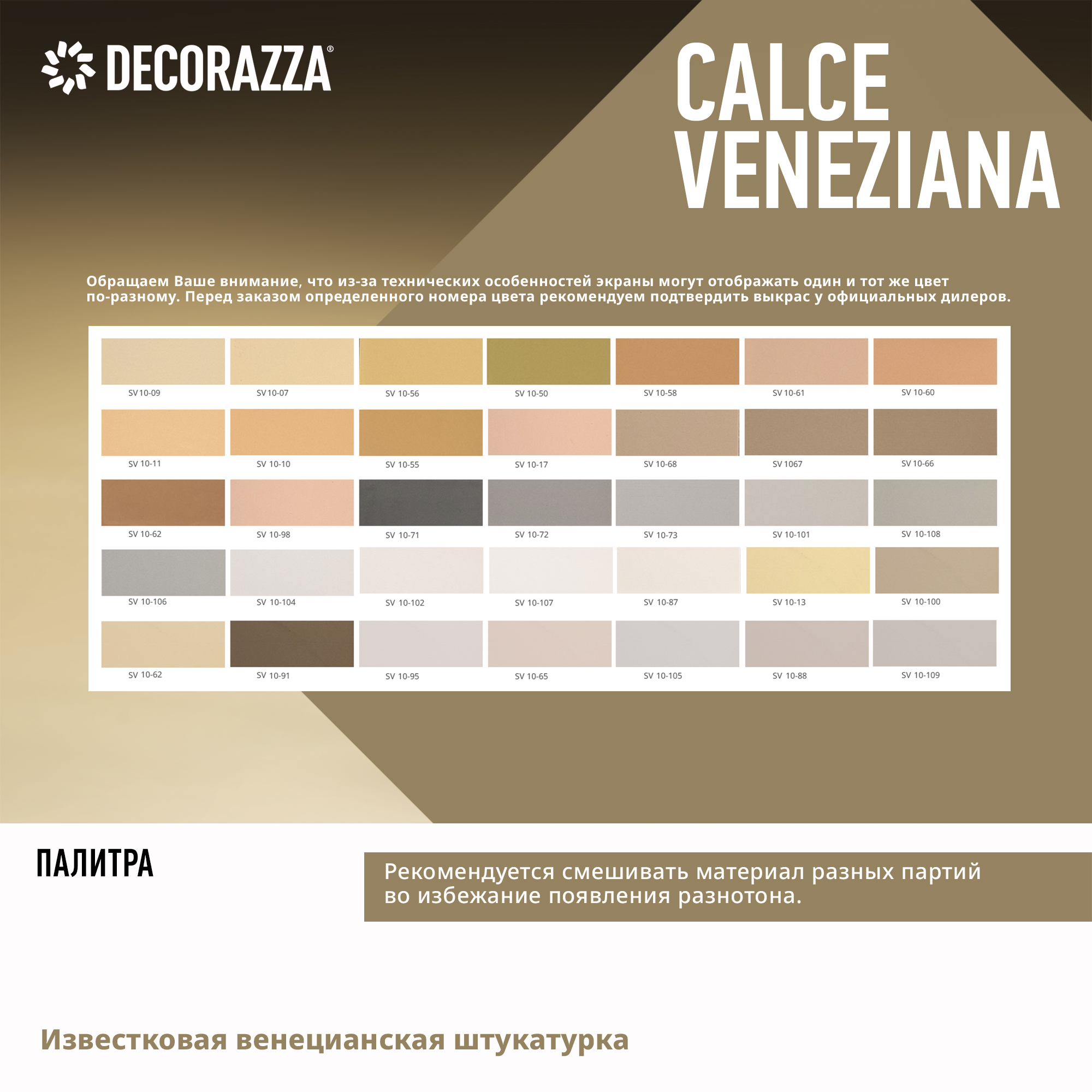Известковая венецианская штукатурка СalceVeneziano  -  Венецианская декоративная штукатурка на основе гашеной извести для создания декоративного покрытия без швов и соединений на стенах, потолках и архитектурных элементах внутри сухих помещений от бренда Decorazza с доставкой по России!