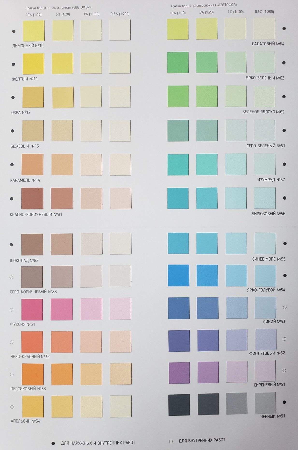Каталог цветов СВЕТОФОР - для ручной колеровки красок колер-пастами "Светофор"