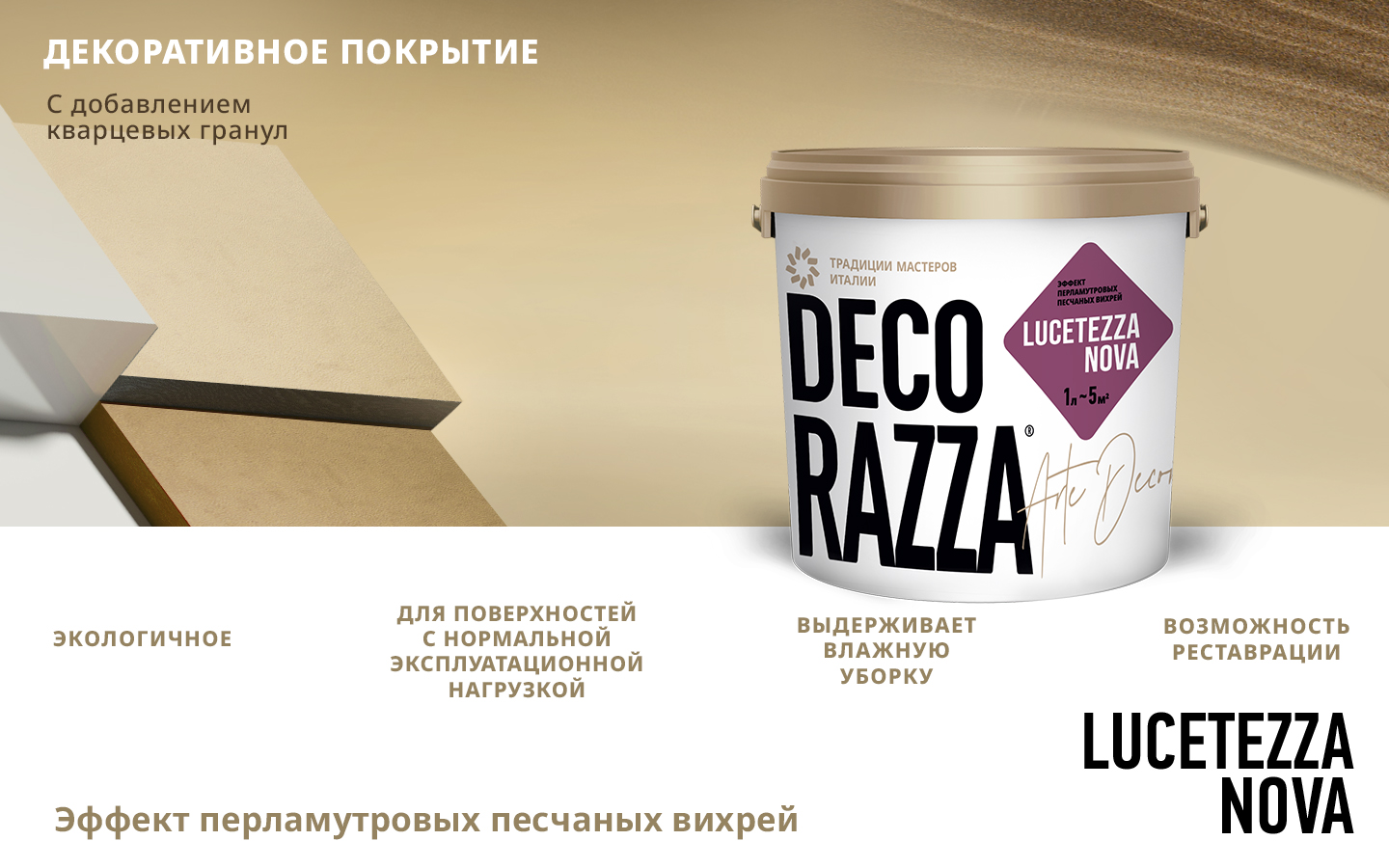 Краска декоративная LUCETEZZA ALLUMINIO - Декоративное покрытие с легкой песчаной структурой от бренда Decorazza с доставкой по России!