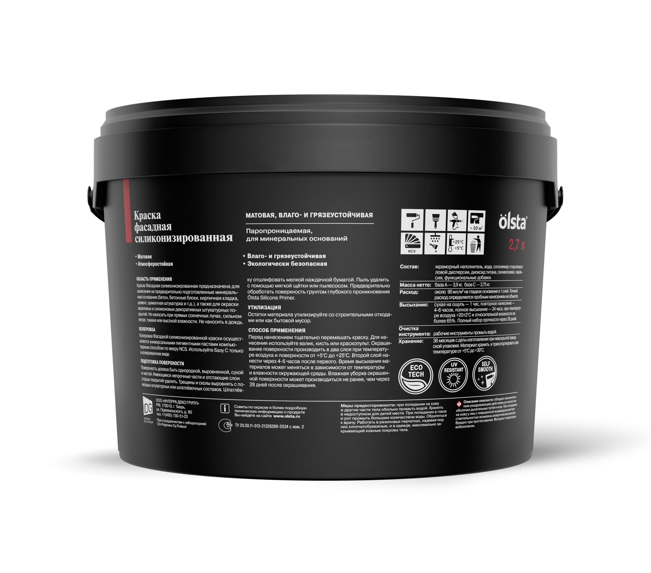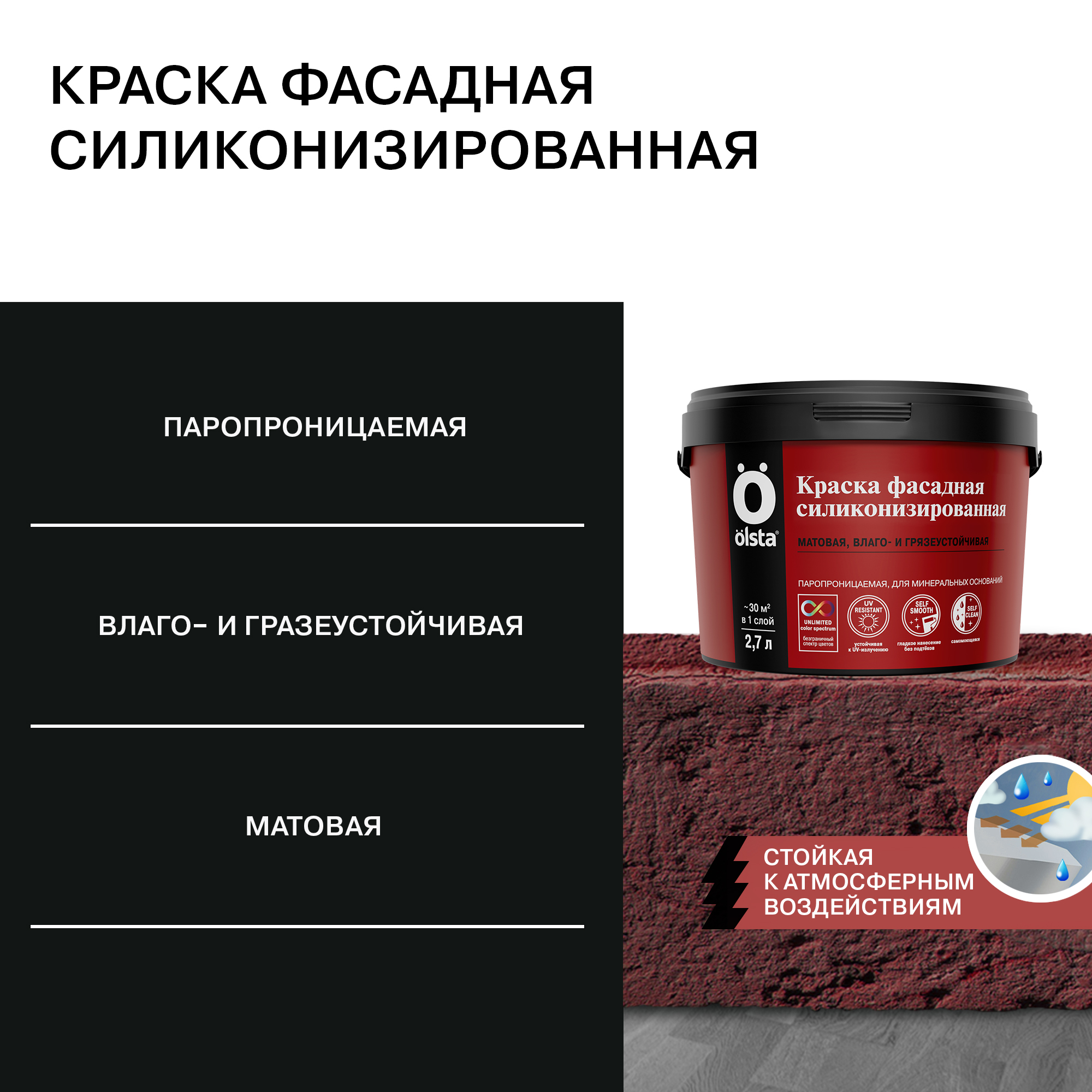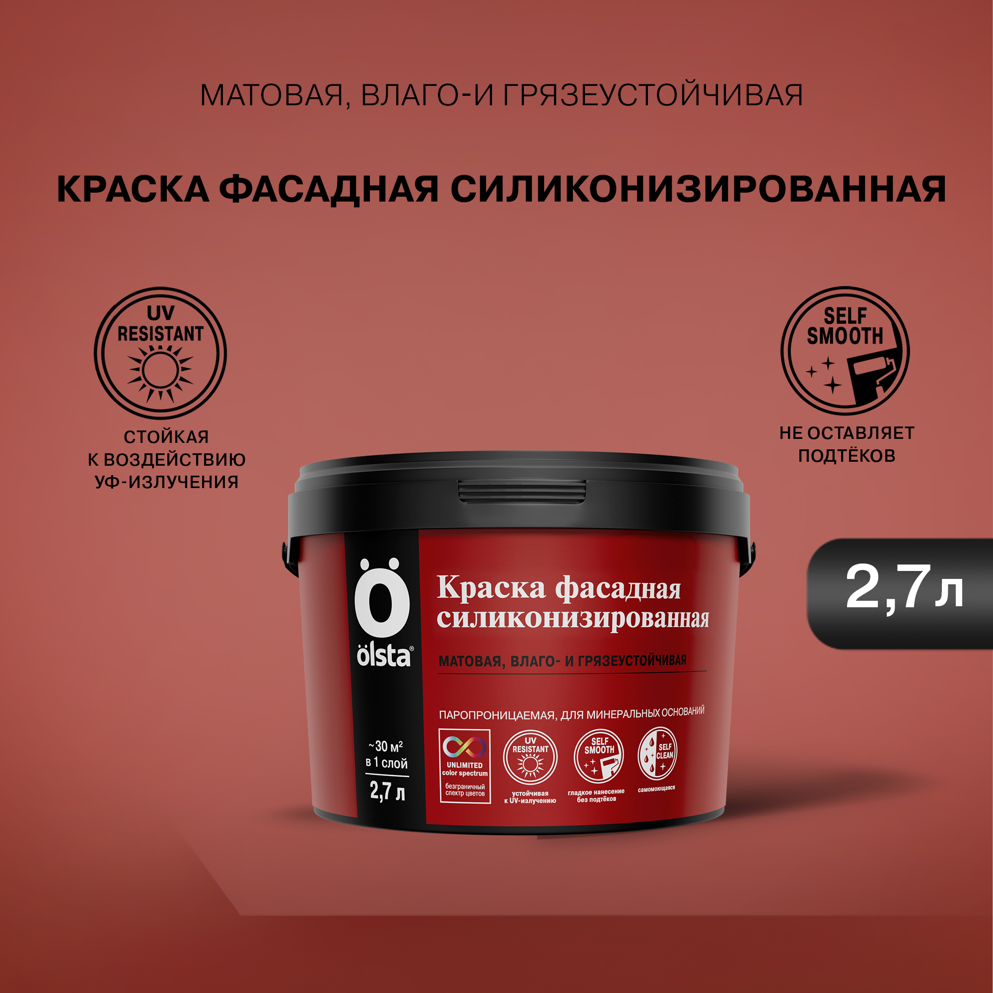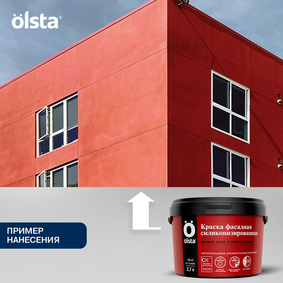 Краска фасадная силиконизированная - Влаго- и грязеустойчивая фасадная силиконизированная краска для минеральных поверхностей от бренда OLSTA с доставкой по России!