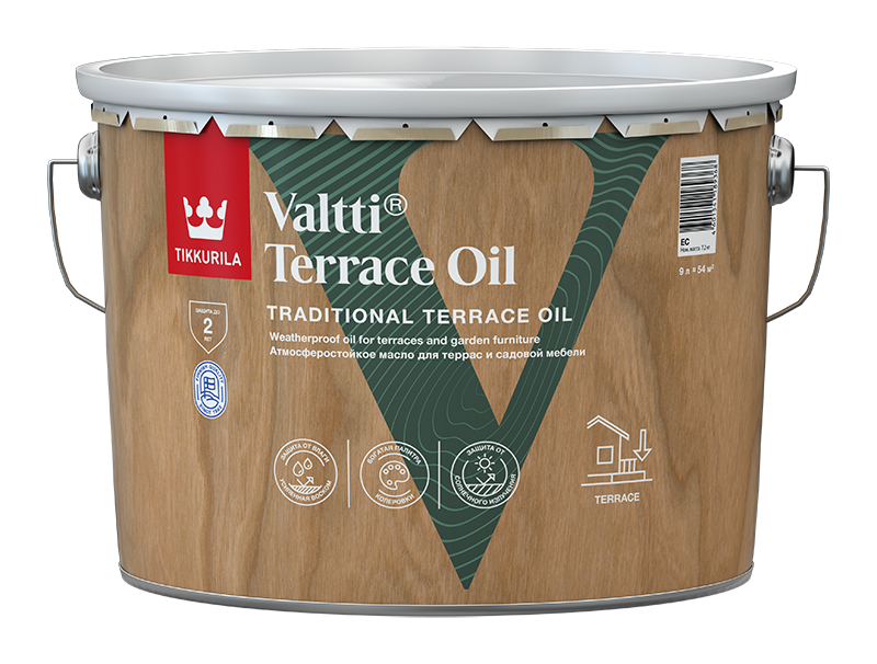 Масло для террас VALTTI TERRACE OIL (мат)  -  Атмосферостойкое масло для террас. Обладает отличными водоотталкивающими свойствами и стойкостью к моющим средствам от бренда Tikkurila с доставкой по России!