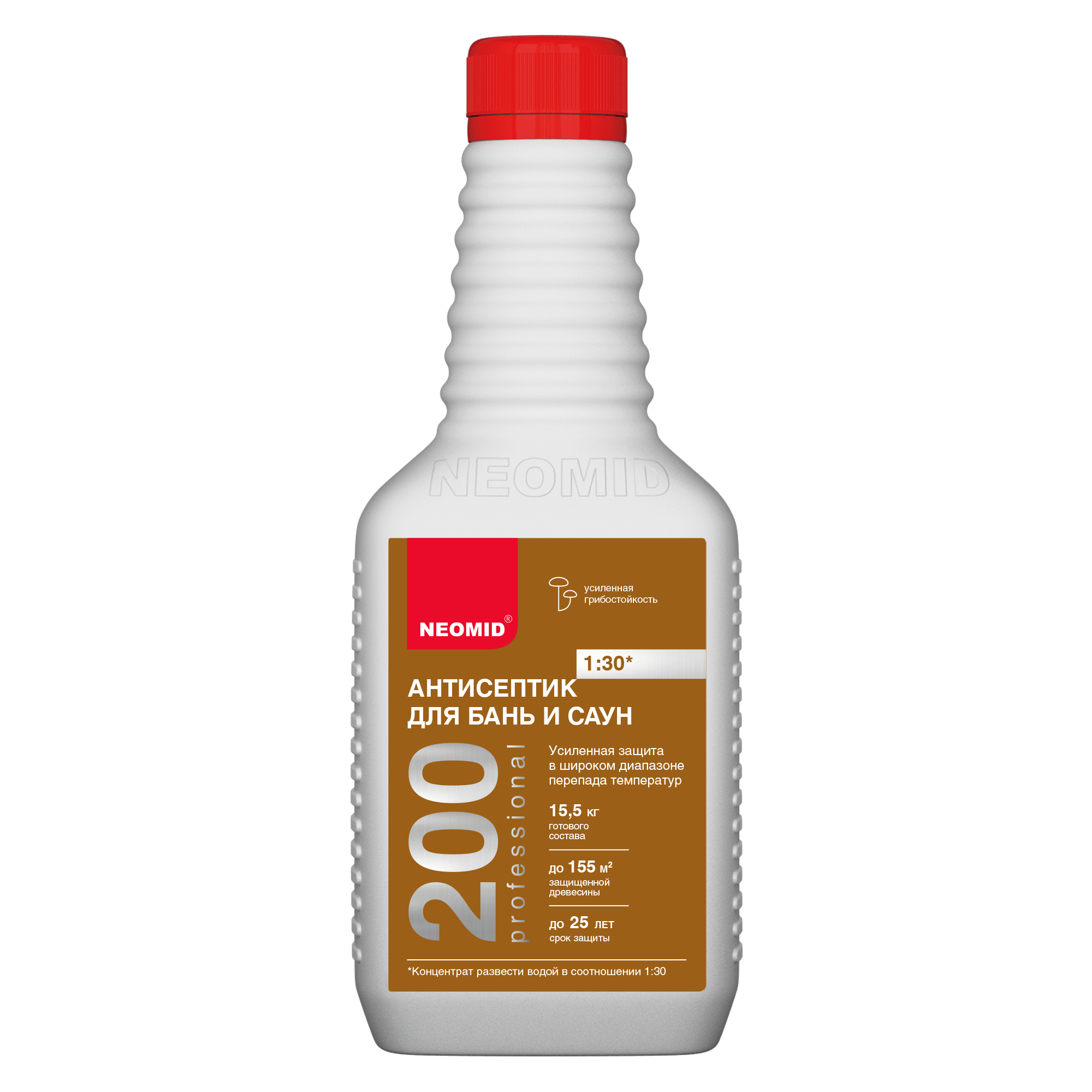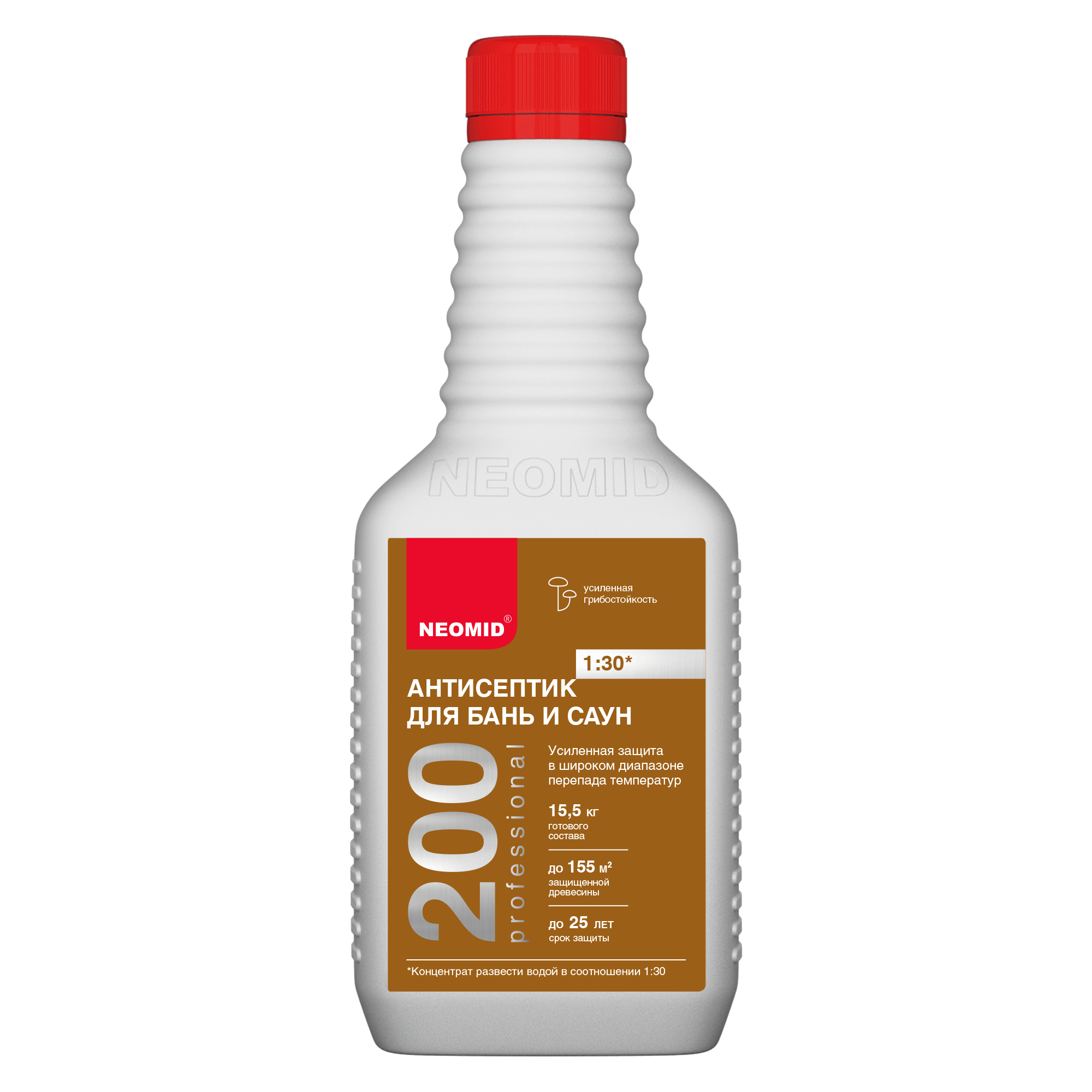 NEOMID 200 деревозащитный концентрат для бани - Антисептик для бань и саун. Способен как предотвращать биопоражение, так и останавливать уже начавшиеся процессы разрушения древесины биологическими агентами от бренда Neomid с доставкой по России!